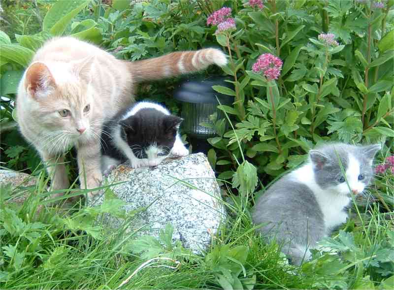 De var helt ny fødte. Dyrlege assistenten Idun syns så synd på dem,og foreslo at hun kunne ta med seg moren og kattungene hjem til kattungene ble av-vent.