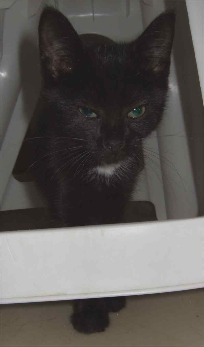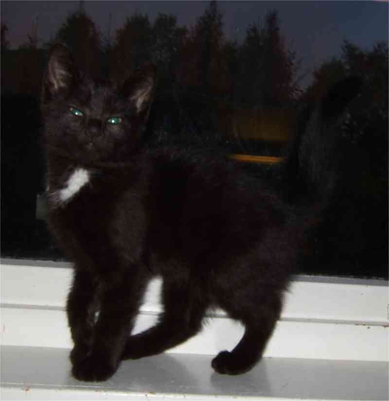 Kjenner du igjen denne lille pusen? Hun var først litt sky men har nå slått seg til ro her sammen med de andre kattungene. Hun er renslig og liker kos. Halen spretter i været og hun er så blid når hun får litt opmerksomhet.