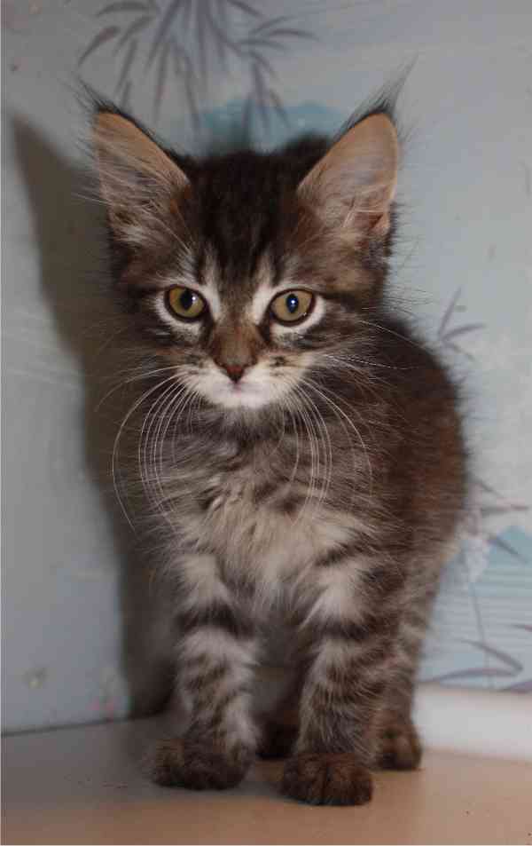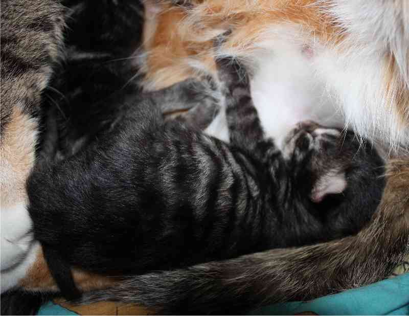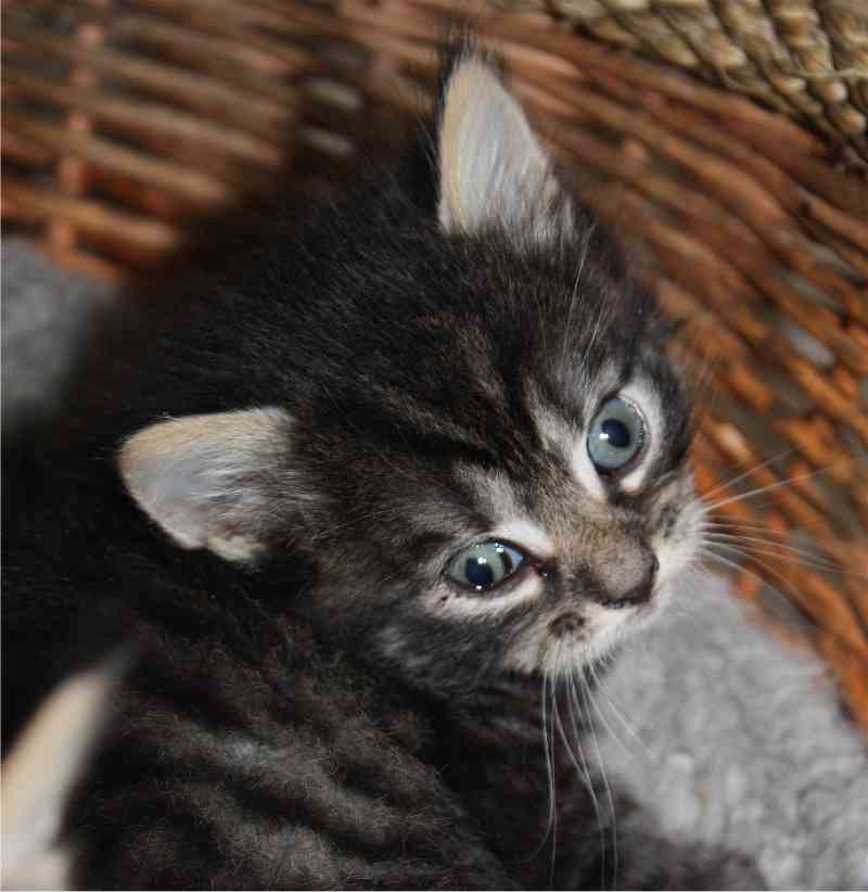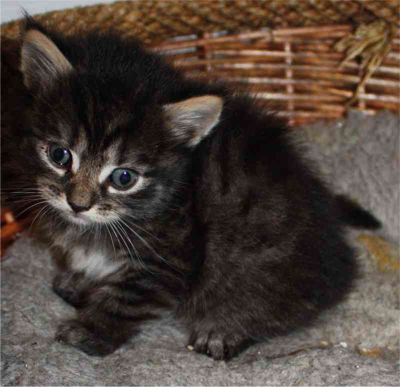 For et par uker siden fikk krabatene øyne, og nå har de begynnt å våge seg ut av kurven. Og de leke sloss litt seg imellom. Nydelig små nøster. Mamma Gudrunn er en veldig rolig og snill pus, og en kjempe god mor.